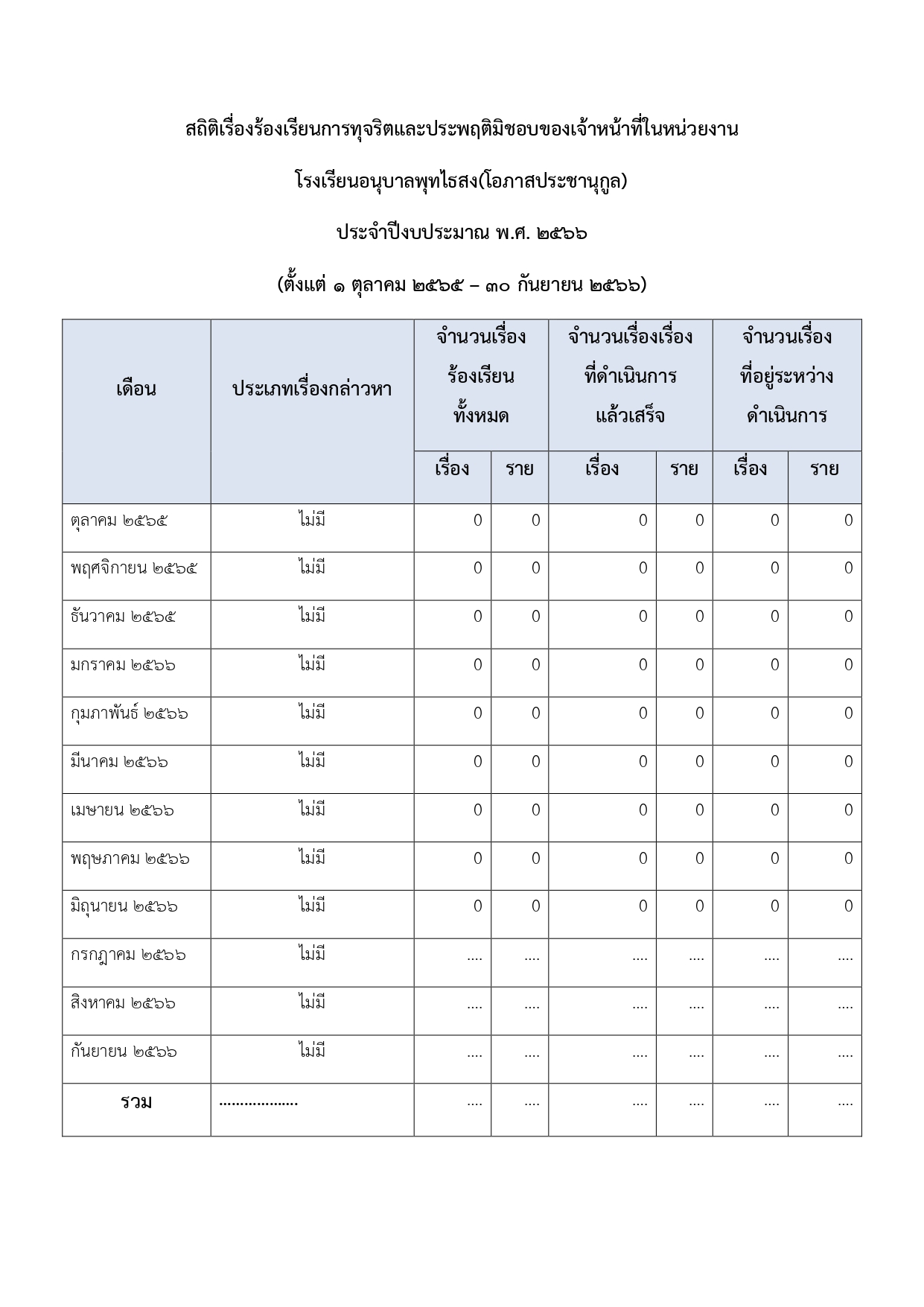 ข้อมูลสถิติเรื่องร้องเรียนการทุจริตและประพฤติมิชอบ
