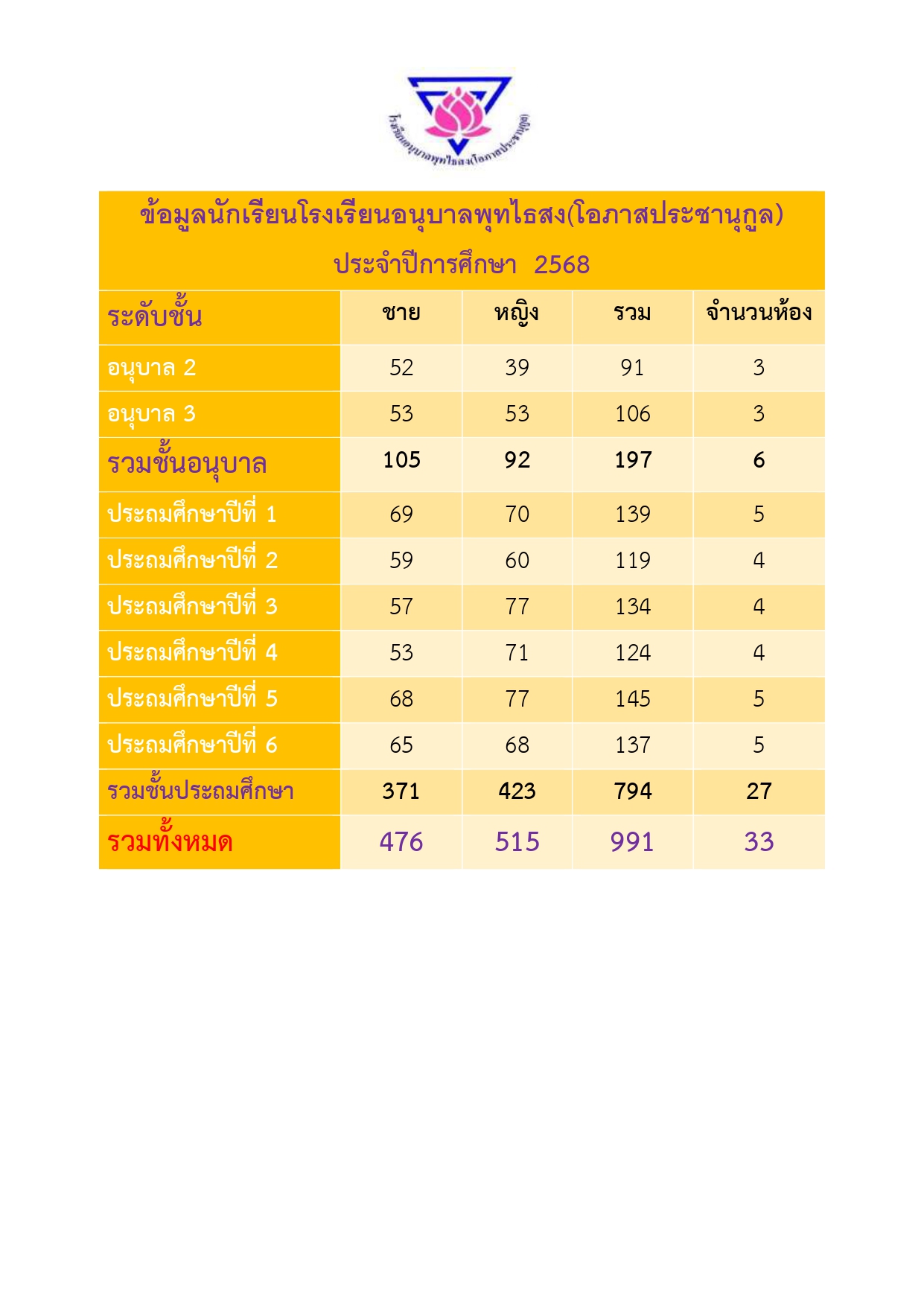 ข้อมูลนักเรียน ประจำปีการศึกษา 2568