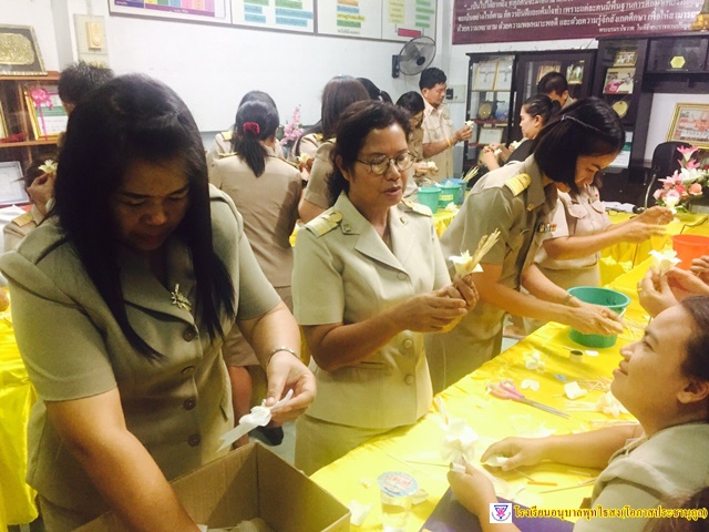 ผู้บริหารและคณะครูโรงเรียนอนุบาลพุทไธสง(โอภาสประชานุกูล) ร่วมกันทำดอกดารารัตน์ น้อมถวายเป็นพระราชกุศ