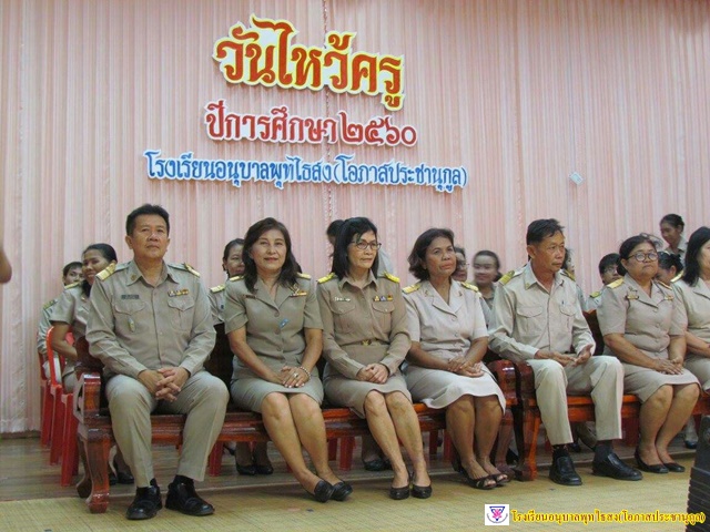 วันพฤหัสบดีที่ 8 มิถุนายน 2560 โรงเรียนอนุบาลพุทไธสง(โอภาสประชานุกูล)ได้จัดพิธีไหว้ครู ประจำปีการศึกษา 2560 ณ หอประชุมอินทนิล นายปิยะ พุทธเพาะ ผู้อำนวยการโรงเรียน เป็นประธานในพิธี ประธานนักเรียนเป็นตัวแทนกล่าวคำไหว้ครู ตัวแทนถือพานของแต่ละห้องจัดพานไหว้ครูมาอย่างสวยงาม นักเรียนทุกคนนำกรวยดอกไม้ พวงมาลัย มาไหว้คุณครู |