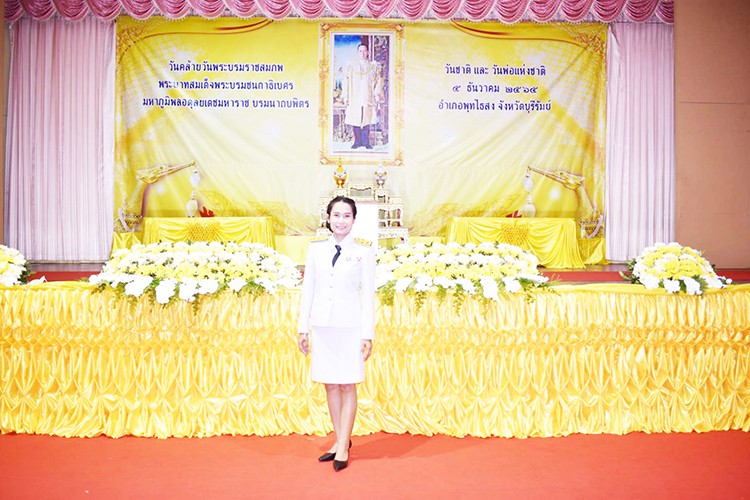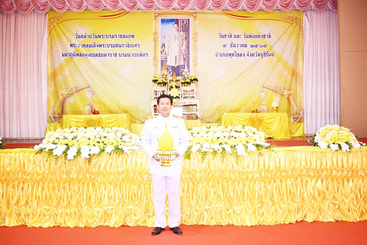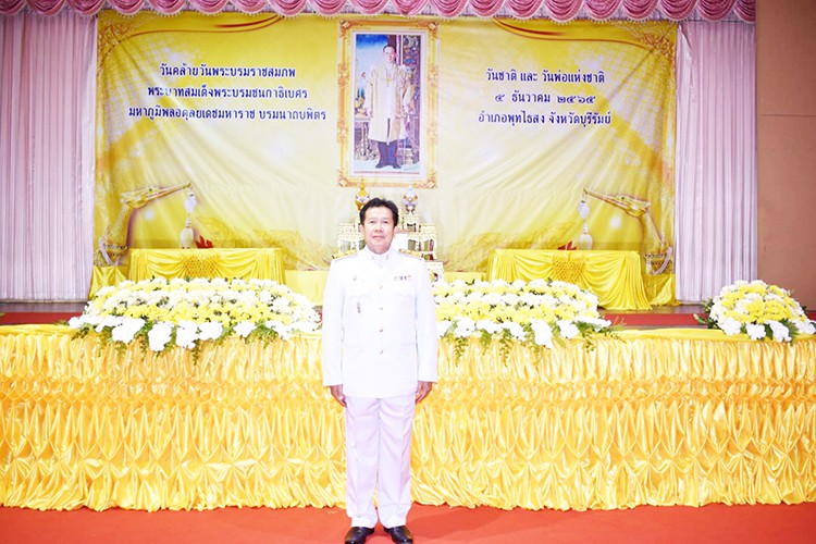 ร่วมพิธีทำบุญตักบาตรถวายพระราชกุศล พิธีวางพานพุ่มดอกไม้และพิธีถวายบังคม เนื่องในวันคล้ายวันพระบรมราชสมภพพระบาทสมเด็จพระบรมชนกาธิเบศร มหาภูมิพลอดุลยเดชมหาราช บรมนาถบพิตร วันชาติ และวันพ่อแห่งชาติ ประจำปีพุทธศักราช ๒๕๖๕