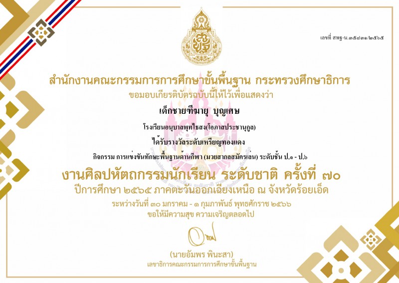 ขอแสดงความยินดีกับนักเรียนโรงเรียนอนุบาลพุทไธสง(โอภาสประชานุกูล) ที่ได้รับรางวัลในการเข้าร่วมแข่งขันงานศิปหัตถกรรมนักเรียน ปีการศึกษา ๒๕๖๕ ครั้งที่ ๗๐ ในระดับชาติ ณ จังหวัดร้อยเอ็ด