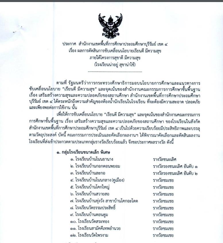 ขอแสดงความยินดีกับโรงเรียนอนุบาลพุทไธสง(โอภาสประชานุกูล)